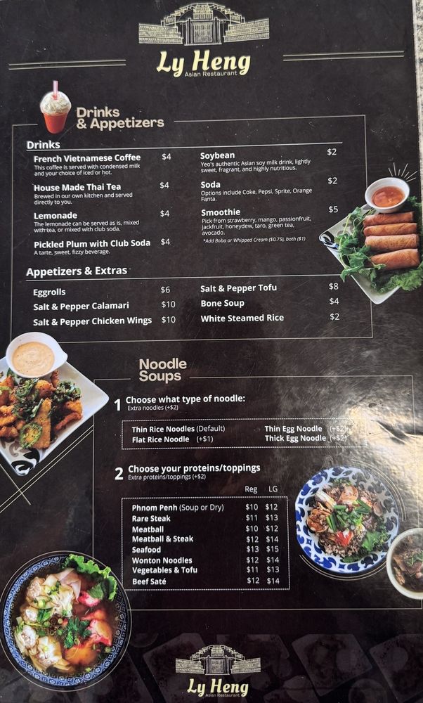 Introducing the menu at Ly Heng, a Cambodian-Chinese-Vietnamese restaurant located in San Diego. With a plethora of dining options - from takeout to catering, and a welcoming atmosphere for groups and kids - Ly Heng offers a diverse culinary experience.
